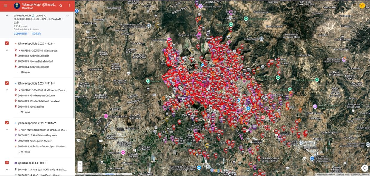 Cada incidencia es mapeada de acuerdo a la información hemerográfica consultada, abriéndose un registro con fecha, número de evento, número de víctimas y ubicación, integrándose de esta forma una memoria documentada en una línea de tiempo sobre la incidencia de los homicidios dolosos en el municipio de León.